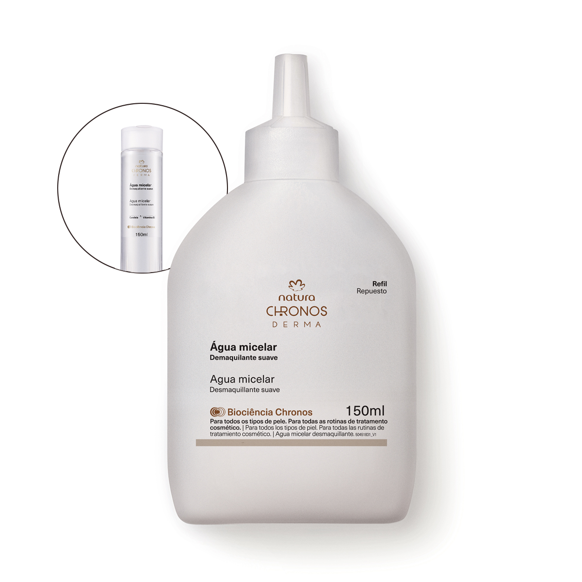 Como usar: gire a tampa do refil para abrir, retire o lacre, coloque a tampa novamente e despeje o conteúdo no recipiente regular utilizando o bico do refil.Agite antes de usar. Aplique a água micelar em um algodão e passe suavemente pelo rosto seco, lábios e área dos olhos. não é necessário enxaguar.